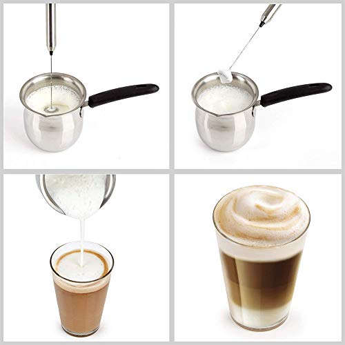 Elektrische Melkschuimer met Roestvrijstalen Behuizing en Roestvrijstalen Garde, Gardeop, Werkt op Batterijen, Zilver
