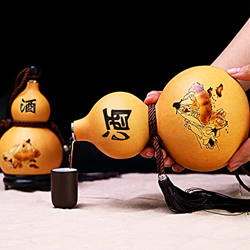 Specificaties: Natural Gourd Hipfles, Sake Bottle Wine Pot Sake Set, Cork Waterkoker Bijenwas Anti-Seepage Medicine Gourd Jug, voor…