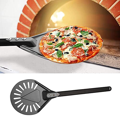 Perforatieontwerp: deze geperforeerde pizzaschep kan het gemakkelijker maken om pizza’s in en uit een oven te schuiven en minimaliseert verbrand meel dat aan de bodem van uw taart blijft kleven.