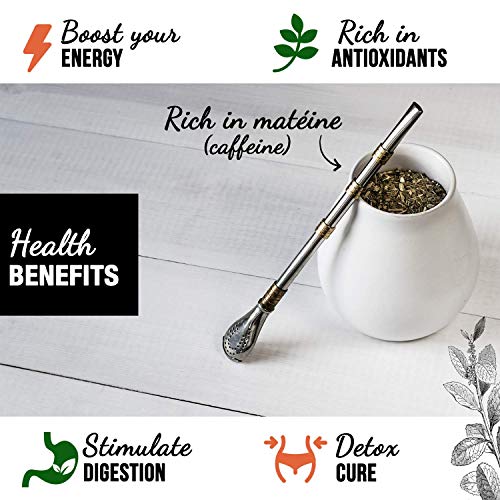 🍃 OPWEKKEND EN ONTGIFTEND – Maté is rijk aan cafeïne en bevordert de spijsvertering. Het heeft een ontgiftende werking en is daardoor een waardevolle bondgenoot in de dagelijkse strijd tegen de kilo’s