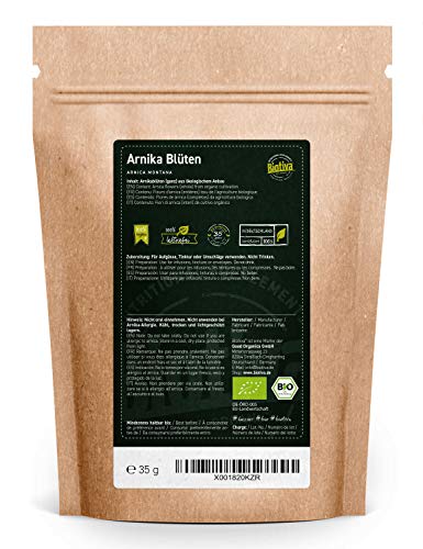 BIO ARNICABLÜTEN TEA bevat 100% zuivere gedroogde arnicabloemen uit de biologische teelt, lat. Arnica Montana. We gebruiken geen losmaakmiddelen, vulmiddelen of flow agents. Alleen puur natuur.