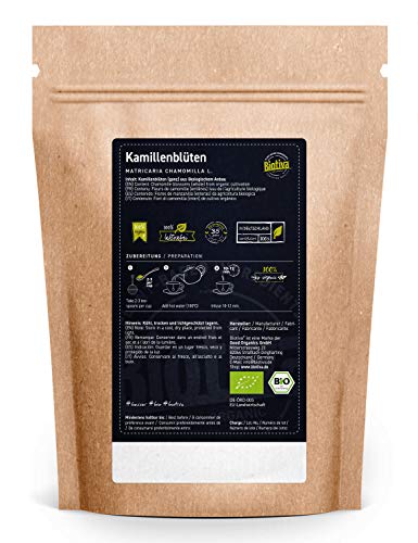 Kamille-bloemen Thee Bio 250 g – EU – teelt – hoogste kwaliteit biologische amillebloemen – kamillentee – gevuld en…