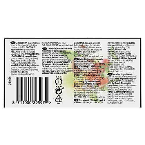 Specificaties: Pickwick Green Tea Variatie, Groene Thee met de Smaken Kokos, Cranberry, Mango & Jasmijn en Aardbei Citroengras (240…