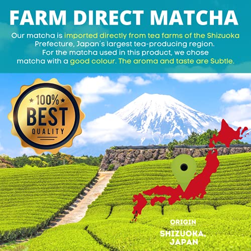 ✅ La nostra polvere Matcha è composta da foglie di tè biologiche al 100% (DE-ÖKO-013). Presenta un gusto ricco e delicatamente amaro.