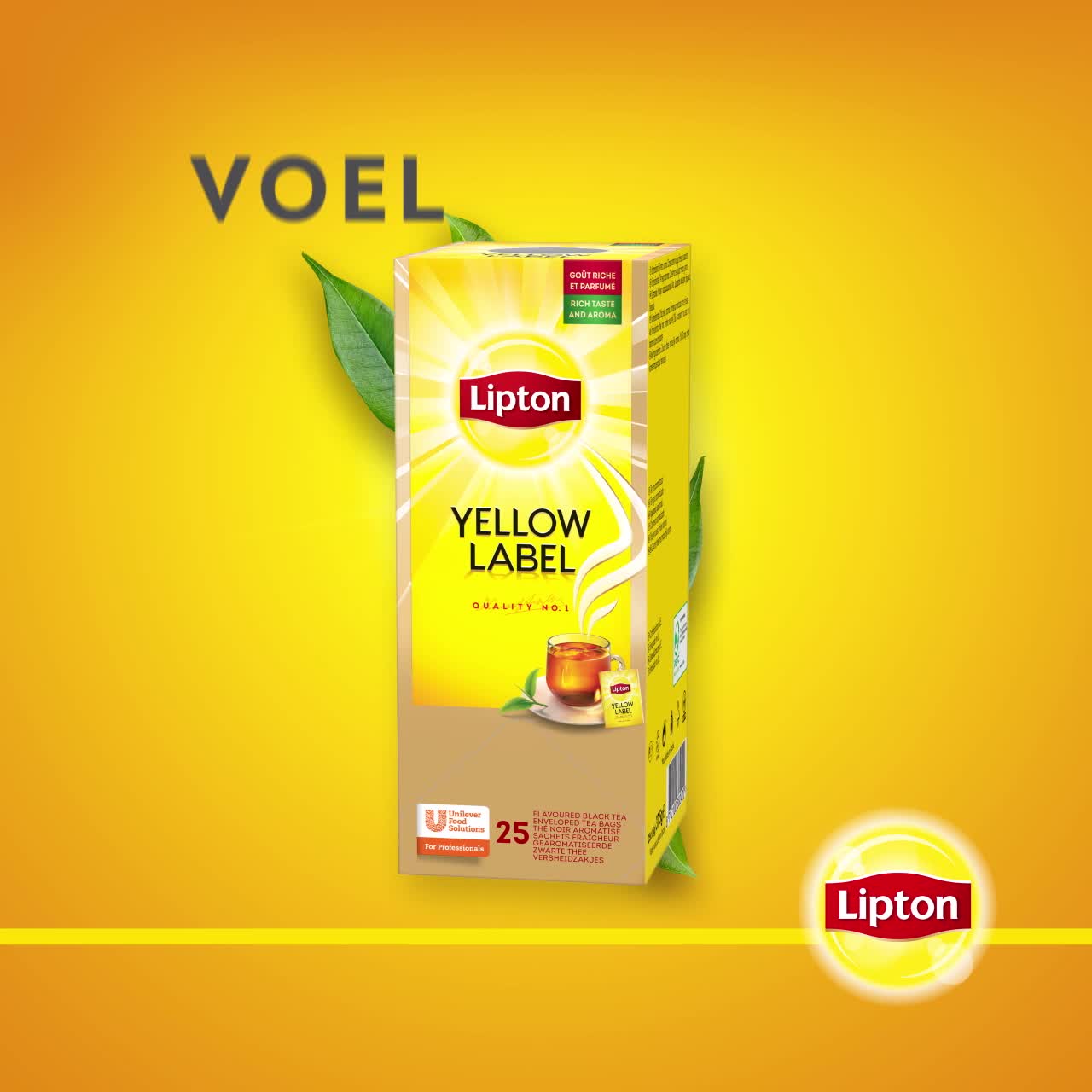 Lipton Yellow Label thee is van nature verrijkt met zonlicht, wat de smaak verrijkt. Bereid de thee gemakkelijk en snel door het theezakje 2-3 minuten te laten trekken. De thee is duurzaam geteeld van Rainforest Alliance gecertificeerde theeplantages. De theezakjes zijn per stuk verpakt in folie-envelop. Deze enveloppen bieden optimale bescherming voor de thee, hiermee blijft de geur en smaak goed behouden. De doos bevat 25 theezakjes in individuele verpakking, maar is ook verkrijgbaar in een doos met 100 theezakjes. Probeer ook eens een van de andere varianten: Lipton Feel Good Selection Thee biedt een breed assortiment van zwarte en groene theeën, fruit en kruiden infusies.