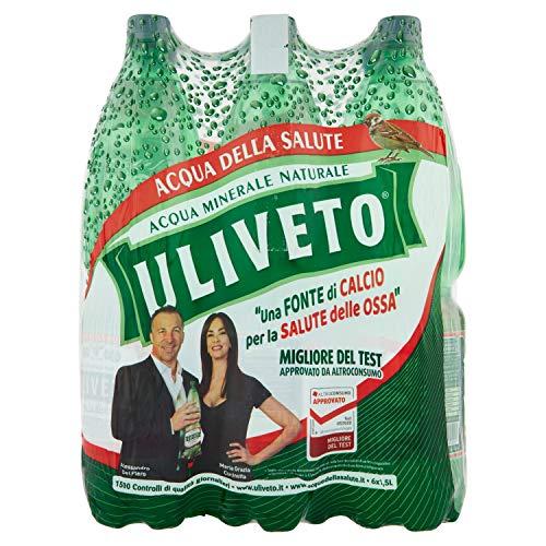 Uliveto mineraalwater is een “natuurlijk bruisend” medium gemineraliseerd water. Het onherhaalbare geheim van dit water zit hem in de perfecte verhouding van zijn componenten (bicarbonaat, calcium, magnesium en sulfaten) die het biologische activiteiten geven die nuttig zijn voor het welzijn van het organisme in het bijzonder bij de behandeling van bepaalde aandoeningen zoals gastro-intestinale aandoeningen. Deze mogelijkheden en eigenschappen van water zijn bewezen door wetenschappelijke studies. Pak met 6 petflessen van elk 1,5 lt